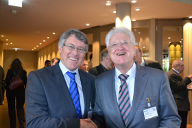 Nicht nur beim Tag der Bustouristik verstehen sie sich gut: Dieter Gauf, Hauptgeschäftsführer des RDA und Initiator des Tag der Bustouristik, mit seinem britischen Gast Stephen Smith, Operations Director des englischen Busunternehmerverbands Confederation of Passenger Transport UK und Vorstand des europäischen Dachverbands EACT.