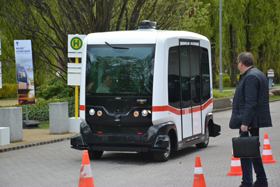 Aussteller und Fachbesucher waren sich einig - der neue Weg bringt frischen Wind und führt in die richtige Richtung. Wer den Weg zur abschließenden Future Night themengerecht zurücklegen wollte, konnte dies im autonom fahrenden Kleinbus “Olli“ der Deutschen Bahn tun (Foto).