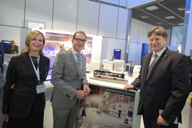 Von politischer Seite sicher die beiden wichtigsten: Verkehrsminister Alexander Dobrindt (auf unserem Bild mit Sandra Schnarrenberger, bdo Vorstandsmitglied, und Thomas Hartmann, Geschäftsführer Volvo Busse Deutschland, Foto: mam/Bus2Bus) hat nicht nur die Busbranche wahr genommen und deren Bedeutung für innovative Mobilitätslösungen ausdrücklich gewürdigt.