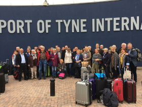 Die neue EuroBus-Leserreise ist mit der Anreise zum Hafen in Amsterdam / Ijmuiden und der Nachtüberfahrt der Gruppe auf der DFDS-Fähre entspannt gestartet. Nach der Ankunft in Newcastle heute morgen (unser Foto zeigt die Gruppe vor dem Schiff, Foto: Schwinge), machten sich die EuroBus’ler auf den Weg in Richtung Schottland.