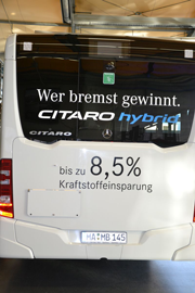 Denn mit dieser Hybrid-Variante bietet Mercedes-Benz Busse eine einfache und kaum Zusatzkosten verursachende Lösung, die sofort im Flottenbetrieb eingesetzt werden kann, und nach Werksangaben „8,5% Kraftstoff einspart“.