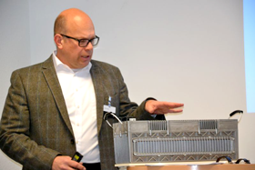 Frank Mandel (Marketing) erläutert auf unserem Foto unten die Funktionsweise dieser neuen Generation 2.0 Speichermodule mit Supercaps, die in einem Aluminium-Gehäuse geschützt untergebracht sind und MHS (Mild Hybrid Storage) genannt werden.