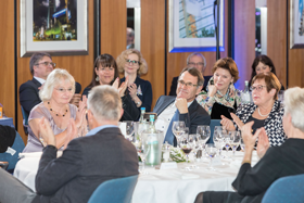 „Mein besonderer Dank geht an den Gründer der Gesellschaft, Hans-Joachim Gommolla, der mir als junger Mann die Chance gegeben hat, mich im Unternehmen zu entwickeln. Er hat mich 1987 zum Verkaufsdirektor Deutschland befördert. Mein Dank geht ebenso an Dr. Monika Gommolla, die mir ebenfalls das volle Vertrauen schenkte“, erklärte Alfred Diem im Maritim Hotel Frankfurt (Bildmitte, rechts neben ihm Dr. Monika Gommolla, Inhaberin und Aufsichtsratsvorsitzende Maritim Hotelgesellschaft, Fotos: Reiner Freese).