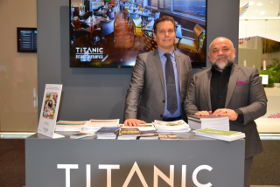 (EB) Mit den Titanic Hotels hat sich eine Inhaber geführte Hotelgruppe in Berlin etabliert, die den Busreiseveranstaltern interessante Möglichkeiten bietet. Inhaber Saim Aygün (r.) und Charles Gresenz (l.), Ansprechpartner für die Gruppenreiseveranstalter (l.), präsentieren auf der ITB in Halle 25 neben den Hotels in der Türkei auch die 3 Titanic Hotels in Berlin.