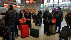 (Mang) Geschäftiges Treiben beim Check-in am Frankfurter Flughafen. Die erste Etappe der vom Reise-Profi Service-Reisen organisierten EuroBus Leserreise, führt die Teilnehmer mit Aegean Airlines nach Thessaloniki.