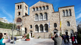 Nach einem Mittagessen in einer der unzähligen, verträumten Tavernen und herrlichem Frühlingswetter, setzte die Gruppe ihre Erkundungstour zu Fuß fort. Die Basilika von Thessaloniki durfte als Highlight dabei natürlich nicht fehlen.