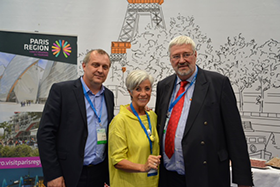 ( auf unserem Foto v.l. Michel Mari, Tourismus-Direktor der Region Paris, Marie-Laure Auxesky von Accor Hotels und Joachim Schweda)