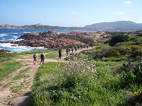 Auf den Laufsteg gehen 26 Seiten mit Sardinien-Reisen, ausführliche Informationen, Trends und Fakten. Die Programme für die Mittelmeerinsel sind fertig zur Anprobe – und zwar maßgeschneiderter denn je (Wandergruppe auf Isola Rossa, Foto: Schön Touristik).