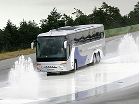 Silberjubiläum für das Sicherheitstraining von Omniplus für Omnibusfahrer: Seit 1993 werden Fahrerinnen und Fahrer in der Erkennung und Vermeidung von Gefahren und Unfällen geschult. Am ersten Fahrertraining im Frühjahr 1993 nahmen zwölf Fahrer teil, bis heute haben es rund 18.000 Fahrer durchlaufen. Experten sind sich sicher: Durch das Training sind Unfälle bereits vermieden worden. Indes gilt der Omnibus als das sicherste Straßenverkehrsmittel in Deutschland: Nur 1,4 Prozent aller Unfälle mit Verletzten und Getöteten geschehen unter Beteiligung von Omnibussen. Geschulte Omnibusfahrer leisten zu diesem geringen Anteil einen wesentlichen Beitrag (Foto: Omniplus).