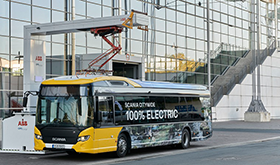 Der batteriebetriebene Scania Citywide Niederflurbus bietet Besuchern die Gelegenheit, sich einen Eindruck von den Fahreigenschaften des Elektrobusses zu erhalten. Nach sechsmonatigen Tests im nordschwedischen Östersund sind die Ergebnisse ermutigend und Scania geht in Richtung Serienproduktion. Karin Radström, Head of Buses and Coaches, Scania, betont, dass batteriebetriebene Busse nur dann effektiv zur Senkung der CO2-Emissionen beitragen, wenn der Lade-Strom durch saubere Energie erzeugt wird. In Östersund werden die Busse vollständig fossilfrei betrieben.
