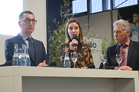 Waren sich in der Podiumsdiskussion einig: Der Bus ist die Lösung, nicht das Problem - Cem Özdemir, Christiane Leonard, Klaus Sedelmeier. (Foto: lop)
