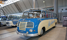 Auf einer Fläche von 140 000 Quadratmetern waren mehr als 4000 Automobile aus sämtlichen Epochen der Mobilitätsgeschichte ausgestellt. Auch die Oldtimer-Omnibusfans kamen auf ihre Kosten: In Halle 8 gab es Oldtimer-Reisebusse zu sehen, darunter als ein besonderes Schmuckstück einen Setra S 8, Baujahr 1951 (Foto), der erste von Kässbohrer gefertigte Bus mit selbsttragender Karosserie.