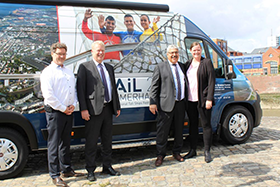 Fünf Tage buntes Treiben vor der Kulisse von rund 250 kleinen und großen Schiffen an den Kajen. Gut aufgelegte und an Gesprächen interessierte Besatzungen aus rund 20 Nationen. Und eine nach den guten Erfahrungen des Veranstalters friedliche Atmosphäre mit rund 1,2 Millionen Schaulustigen und Seh-Leuten - das ist die Sail Bremerhaven. Auf dieses attraktive Windjammerfestival in genau 365 Tagen vom 19. bis 23. August 2020 freuen sich die Bremerhavener schon heute. (Foto: Vorfreude auf die „Sail 2020“ bei den Verantwortlichen: Raymond Kiesbye, Dr. Ralf Meyer, Oberbürgermeister Melf Grantz, Katharina Loske vor dem neuen Promotionbus der Erlebnis Bremerhaven , C: Dörte Behrmann / Erlebnis Bremerhaven).