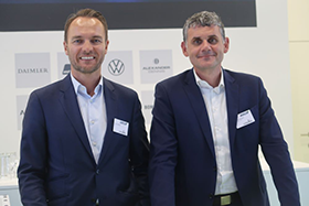 „Wir sind sehr stolz, dass wir uns mit dem neuen Batteriesystem als Innovationstreiber im Bereich von Hochenergiebatterien positionieren konnten und gleichzeitig, was die heutigen Technologien angeht, mit Abstand führend im Bereich der Energiedichte sind“, sagt Sven Schulz, CEO der Akasol AG (auf unserem Foto links mit Dr. Stefan Bergold, Head of Sales, c: lop).