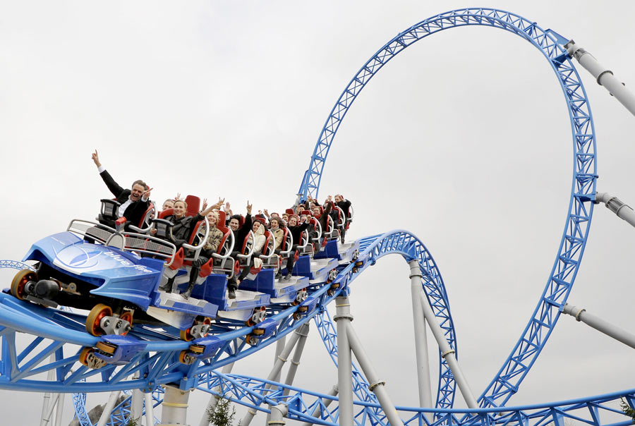 Mack schüttelt Promis durch -mit „Blue Fire“ zu neuen Thrills : Fulminanter Katapult-Start in 2,5 Sekunden von 0 auf 100 km/h. Wie nicht anders erwartet, startete der Europa-Park mit einem absoluten Kracher zum Aprilanfang in die neue Freizeitpark-Saison 2009. Promis wie die Weitsprung-Weltmeisterin Heike Drechsler, die Box-Weltmeisterin Regina Halmich, der Rock- und TV-Teenie-Schwarm Mark Terenzi und der Ex-Fußball-Profi und jetzt Trainer Murat Yakim ließen sich als Erste mit Europa-Park Chef Roland Mack nebst dessen Familie im nagelneuen „Blue Fire Megacoaster“ auf eine turbulente Fahrt katapultieren – Looping und weitere Überkopf-Elemente eingeschlossen. Schauplatz: Die neue „Island“- Erlebniswelt mit einer absoluten Sensations-Achterbahn in dem um jetzt zwei Hektar erweiterten größten Freizeitpark Deutschlands. 50 Millionen Euro Investitionsvolumen hat sich die Unternehmerfamilie Mack diese Erweiterung kosten lassen, die eine zweite vierspurige Zufahrtsstraße zum Europa-Park Gelände in Rust beinhaltet. Wohl gemerkt ohne staatliche Subventionen oder gar einem „Schutzschirm“. „Ein Zeichen dafür, wie wir als mittelständisches Unternehmen aus eigener Kraft der durch wenige Hasardeure hervorgerufenen Wirtschaftskrise mit Elan und Taten entgegenwirken“, wie Roland Mack bei der Eröffnungspressekonferenz vor über 300 Journalisten aus Deutschland, Frankreich und der Schweiz deutlich formulierte. Dazu ein Bekenntnis an das eigene Selbstverständnis des weltweit einzigen Herstellers und gleichzeitig Betreibers von Achterbahnen dieser Größenordnung: „Wir sind in der Lage, etwas zu bewegen, wenn wir uns das zum Ziel gesetzt haben.“ Zweieinhalb Jahre haben die Ingenieure um Sohn Michael Mack, der mit seinem Bruder Thomas die mittlerweile achte Generation der Mack-Familie in einer einmaligen über 200jährigen Tradition bildet, an der Mega-Achterbahn getüftelt, die eine Last von 10,2 Tonnen in atemberaubender „Formel 1“- Geschwindigkeit 40 m Höhe befördert und die „Mitreisenden“ in atemberaubende Tiefen stürzen lässt. Der Coaster wird völlig verschleißfrei über Magnetfelder bewegt und ist auf die Beförderung von 20.000 Personen pro Tag ausgelegt. Auf diese wirkt eine Kraft von 4,5 G in der Spitze, das bedeutet das Viereinhalbfache des eigenen Körpergewichtes. „Einfach unbeschreiblich“ und „absoluter Wahnsinn“ lauteten die Kommentare der „Überlebenden“ der ersten Fahrt bei der Eröffnung. Klar, dass die hartgesottenen Achterbahn-Cracks dies nicht so dramatisch sehen werden – doch die Freizeitpark-Szene Europas hat ein neues Gesprächsthema.