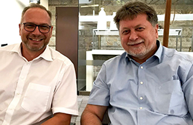 Volvo Busse Deutschland steht ab 1. Dezember unter neuer Leitung: Gerd Schneider (49, Foto links) übernimmt die Geschäftsführung von seinem Vorgänger Thomas Hartmann (63, rechts), der sich in den Ruhestand verabschiedet.