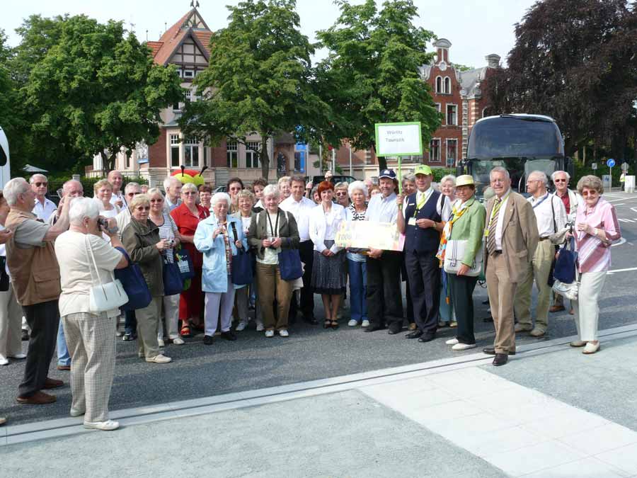 Auf der Bundesgartenschau in Schwerin konnte bereits der 1.000. Bus begrüßt werden. Es war ein Fahrzeug des Busunternehmens Wörlitz-Tourist aus Berlin, der 47 Gäste aus der Bundeshauptstadt zur BUGA brachte. BUGA-Geschäftsführer Jochen Sandner, Nahverkehrsgeschäftsführer Norbert Klatt und die Geschäftsführerin der Stadtmarketinggesellschaft, Martina Müller, begrüßten die Gäste und überreichten kleine Geschenke. Für alle gab es einen Sektempfang. Busfahrer Bernd Ebert kam bereits das vierte Mal nach Schwerin. „Eine so gute Betreuung wie hier habe ich bisher selten erlebt“, sagte er. „Der Service des Nahverkehrsbetriebes ist ausgezeichnet.“ Ebert lobte vor allem die Möglichkeiten, auf dem NVS-Betriebshof den Bus waschen und die Toilette leeren zu können. „Außerdem werden wir sehr freundlich eingewiesen, ein Shuttle fährt uns problemlos vom Betriebshof zur BUGA. Und der Busterminal am Gartenschaugelände sowie die Abstellmöglichkeiten beim NVS sind vorbildlich. Das habe ich schon ganz anders erlebt.“ Jochen Sandner freute sich über die jetzt schon gute Resonanz bei den Busreiseveranstaltern. „Die Busreisesaison läuft jetzt erst an. Dass wir nach vier Wochen Bundesgartenschau bereits den 1.000. Bus begrüßen konnten, ist sehr erfreulich.“ Immerhin sind damit gut 20% der BUGA-Besucher mit dem Bus angereist. „Da zeigt sich offenbar, dass sich unsere Bemühungen um die Busbranche auszahlen“, ergänzte Daniela Schröder. Sie hatte in den zurück liegenden Jahren die Busverbände in ständigem Kontakt intensiv informiert. „Auf den Jahrestagungen der Landesverbände in ganz Deutschland und auch noch bei der RDA-Mitgliederversammlung am BUGA-Eröffnungswochenende hier in Schwerin konnten wir die Veranstalter überzeugen, dass wir eine attraktive Gartenschau bieten.“