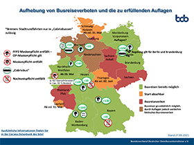 Darin werden nach eigenen Angaben konkrete Schutzmaßnahmen für alle Phasen einer Busreise – inklusive eines umfassenden Hygienekonzepts – aufgezeigt. Anlässlich der Veröffentlichung betont der bdo seinen Ruf nach abgestimmten einheitlichen Rahmenbedingungen. Nur so sei ein echter Restart möglich, da andernfalls bürokratische Hürden, ein massiver Organisationsaufwand und die Verunsicherung der Kundinnen und Kunden die Durchführung von Fahrten praktisch unmöglich machen würden. .