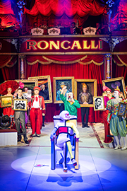 In der Manege dreht sich alles um Kunst in ihren zahlreichen Facetten, sie verbindet alle Programmpunkte. Liebhaber der bildenden Künste werden Werke der Künstler Piet Mondrian, Leonardo da Vinci oder Frida Kahlo entdecken, Referenzen zum Bauhaus aufspüren und sich bei der Roncalli-Bilderparade (Foto, © Circus Roncalli) wie in ein Museum versetzt fühlen. Weltklasse-Artisten, liebenswerte Clowns und Roncalli´s weltweit einzigartige 300-Grad-Holografie im Circusrund – ein circensisches Spektakel zwischen Nostalgie und Moderne. Und das alles vor der Kulisse eines Circuszeltes, welches als Kunstwerk für sich selbst steht.