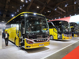 Unsere Fotos zeigen die ausgestellten Busse am Stand von Daimler Buses, den Premierenbus Citaro Fuell Cell und die neuen Busse der Setra MultiClass 515 LE.