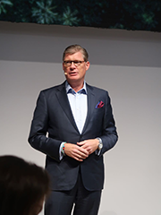(lop) Till Oberwörder, Bus-Chef von Daimler Buses (Foto, c:lop), appellierte bei der Präsentation der neuesten Busse von Mercedes-Benz und Setra am Stand an die Politik, die angestrebten Ziele zur Co2-Reduktion realistisch zu gestalten.