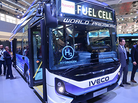 Auf dem "Zero-Emission-Stand" (alle ausgestellten Fahrzeuge sind emissionsfrei) präsentiert Iveco Bus sein nachhaltiges Line-Up - inklusive einer Weltpremiere: der neue e-Way H2 (Foto oben, c: lop).
