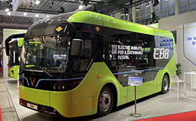 Ganz neu auf dem europäischen Markt ist der vietnamesische Hersteller Vinfast, der auf der Busworld zwei Elektrobusse präsentierte, den EB 12, einen zwölf Meter langen batterieelektrischen Solobus, und den EB 8, einen Elektro-Midibus (Fotos oben, c: alle Fotos c: tom). Beide Fahrzeugmodelle entsprechen den EU-Standards, der EB 12 ist speziell für den europäischen Einsatz konzipiert. Der EB 8 und der EB 12 sind mit LFP-Batterien von CATL oder Gotion ausgerüstet, so der Hersteller. VinFast betonte auf der Busworld, dass man nicht nur Hersteller vollelektrischer Fahrzeuge ist, sondern ein umfassendes E-Mobilitäts-Ökosystem anbietet ,das sich in Vietnam bereits bewährt hat.