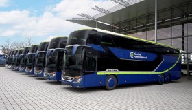Anlässlich seines 35-jährigen Firmenjubiläums hat Schröder Reisen 16 neue Reisebusse übernommen: elf S 531 DT-Doppelstockbusse und fünf S 517 HD der ComfortClass. Die Fahrzeuge sind in Berlin und am Stammsitz Langenau stationiert und werden für Tagesfahrten sowie mehrtägige Reisen in Deutschland und Europa eingesetzt.