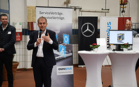 „Busse müssen den ganzen Tag laufen, daher ist für uns der Service das Rückgrat«, betonte Heinz Friedrich, Geschäftsleiter Vertrieb & Service Deutschland von Daimler Buses, bei der feierlichen Eröffnung des neuen Omniplus-Service-Stützpunktes.